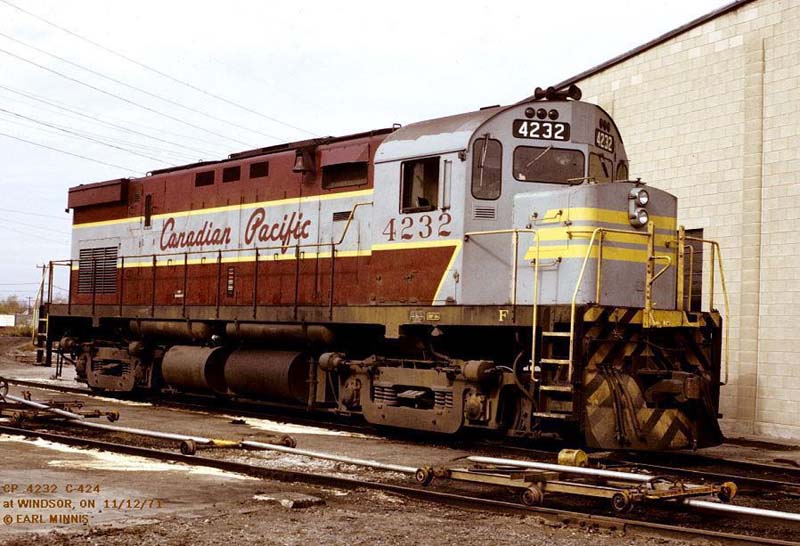 Other Photos (chronological) : 1. CP 4232 at Smiths Falls, ON., painted in the CP Rail Large Multimark paint scheme. Photo by Bill Sanderson, 1983; 2. CP 4232 at Smiths Falls, ON., painted in the CP Rail no-Multimark paint scheme. Photo by Bill Sanderson, 1990.
