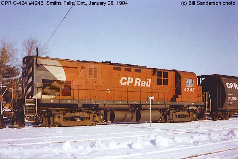2. CP 4243 at Smiths Falls, ON., painted in the CP Rail Large Multimark paint scheme. Photo by Bill Sanderson, 1984.