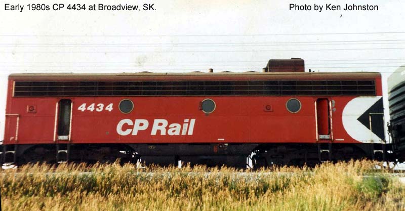 Other Photos (chronological) : 1. CP 1908 at Trois Rivieres, QC., painted in the CP Rail Small Multimark paint scheme. Photo by Roger Boisvert, 1969. From the Ron Visockis collection; 2. CP 4434 at Broadview, SK., painted in the CP Rail Small Multimark paint scheme. Photo by Ken Johnston, early 1980s.