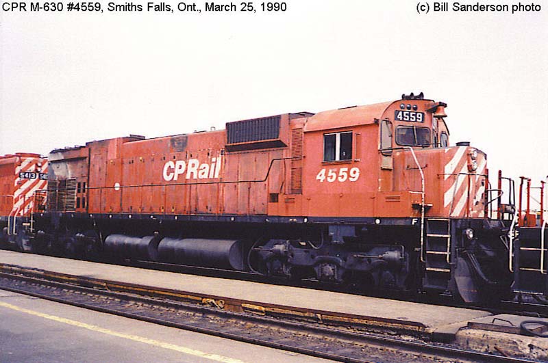 Other Photos (chronological) : 1. CP 4514 at Alyth, Calgary AB., painted in the CP Rail Large Multimark paint scheme. Photo by Bob Loat, 1970. From the Bill Sanderson collection; 2. CP 4559 at Smiths Falls, ON., painted in the CP Rail Large Multimark paint scheme. Photo by Bill Sanderson, 1990.