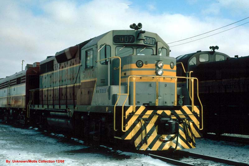 Other Photos (chronological) : 1. CP 8207 at Trois Rivieres, QC., painted in the Maroon & Grey "Script" paint scheme. Photo by Roger Boisvert, 1964. From the Bill Sanderson collection; 2. CP 5007, painted in the Maroon & Grey "Script" paint scheme. Photographer and location unknown. From the E.D. Motis collection, 1968; 3. CP 5007 at Montreal, QC., painted in the CP Rail Large Multimark paint scheme. Photographer and date unknown. From the Bill Sanderson collection; 4. CP 5007 at Port Coquitlam, B.C., painted in the CP Rail Small Multimark paint scheme. Photo by Bill Sanderson, 1996.