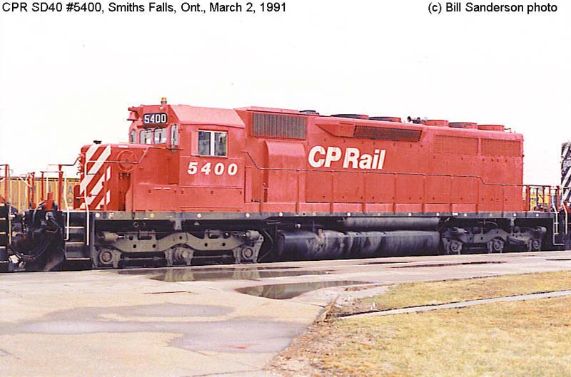 2. CP 5400 at Smiths Falls , ON., painted in the CP Rail no-Multimark paint scheme. Photo by Bill Sanderson, 1991.