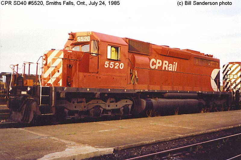 1. CP 5520 at Toronto, ON., painted in the CP Rail Large Multimark paint scheme. Photo by D.W> Hately, 1974. From the Bill Sanderson collection;