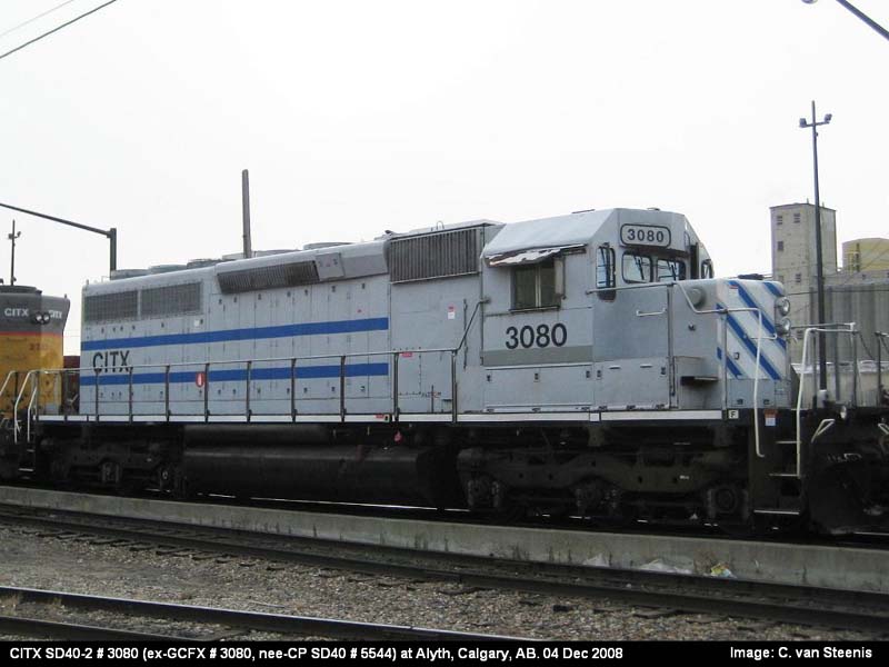 Notes : Upgraded to SD40-2 electrical specifications. Traded to East Coast Motive Power (6/9/2000). Rebuilt by Alstom, became GCFX #3080. Renumbered to CITX #3080 (2008).