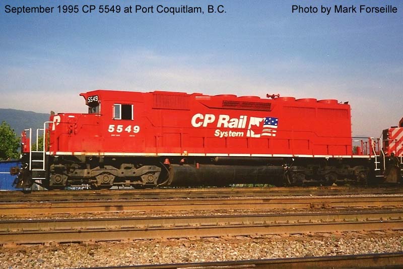 5. CP 5549 at Port Coquitlam, B.C., painted in the CP Rail Dual Flags paint scheme. Photo by Mark Forseille, 1995;