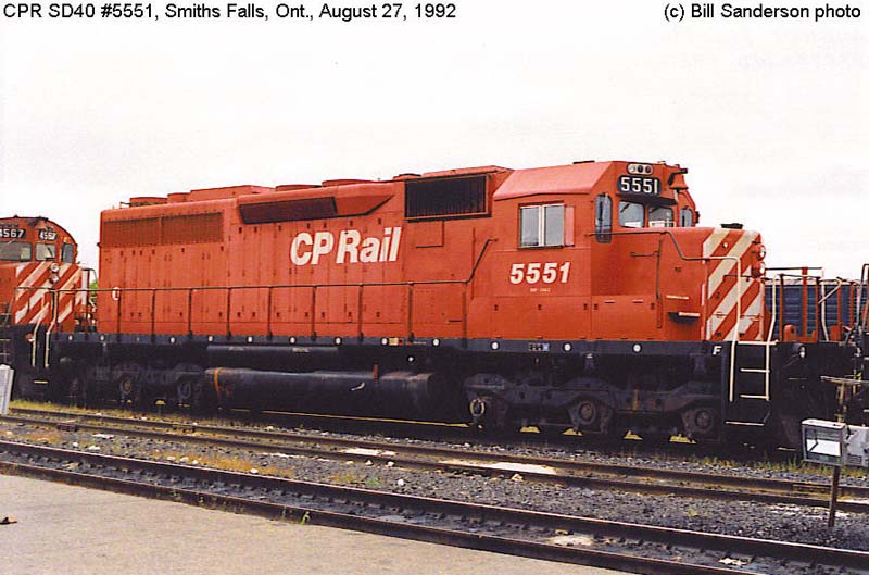 4. CP 5551 at Smiths Falls, ON., painted in the CP Rail no-Multimark paint scheme. Photo by Bill Sanderson, 1992;