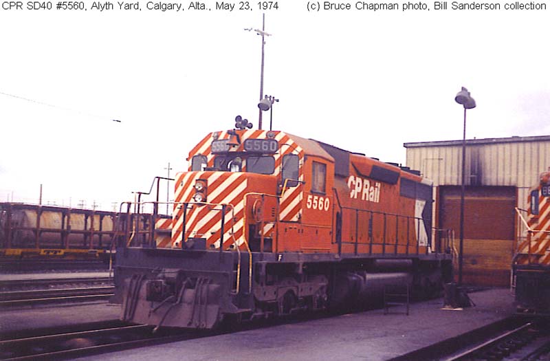 Other Photos (chronological) : 1. CP 5560 at Alyth, Calgary, AB., painted in the CP Rail Large Multimark paint scheme. Photo by Bruce Chapman, 1974. From the Bill Sanderson collection; 2. St.L&H 5560 at Smiths Falls, ON., rebuilt as SD40-2, painted in the St.L&H paint scheme. Photo by Bill Sanderson, 1998.