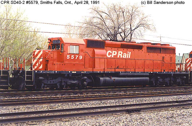 Other Photos (chronological) : 1. CP 5579 at Alyth, Calgary AB., painted in the CP Rail Large Multimark paint scheme. Photo by Bruce Chapman, 1974. From the Bill Sanderson collection; 2. CP 5579 at Yoho, B.C., painted in the CP Rail Large Multimark paint scheme. Photo by Claude Prutton, 1988; 3. CP 5579 at Smiths Falls, ON., painted in the CP Rail no-Multimark paint scheme. Photo by Bill Sanderson, 1991; 4. CP 5579 at Smiths Falls, ON., painted in the CPR Beaver paint scheme. Photo by Bill Sanderson, 2001.