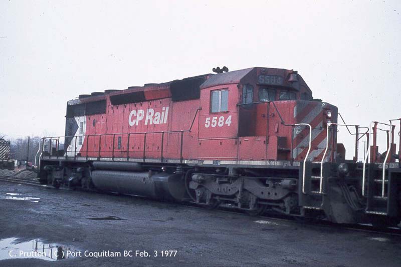 Other Photos (chronological) : 1. CP 5584 at Montreal, QC., painted in the CP Rail Large Multimark paint scheme. Photo by Bruce Chapman, 1976. From the Bill Sanderson collection; 2. CP 5584 at Ogden, Calgary AB., dismantled. Photo by R.A. Matthews, 1981. From the Bill Sanderson collection.