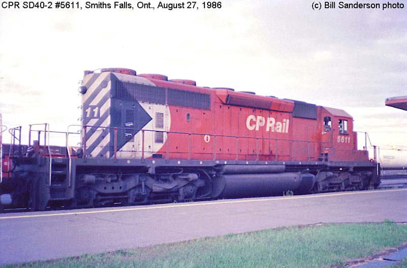 2. CP 5611 at Smiths Falls, ON., painted in the CP Rail Large Multimark paint scheme. Photo by Bill Sanderson, 1986;
