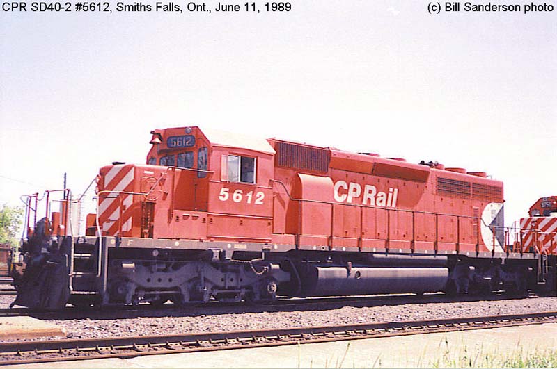2. CP 5612 at Smiths Falls, ON., painted in the CP Rail Dual Flags paint scheme. Photo by Bill Sanderson, 1996;