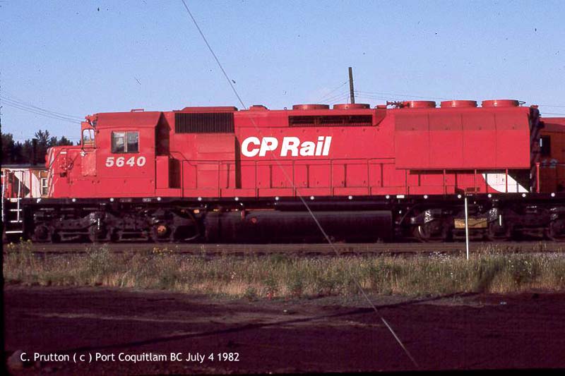 Other Photos (chronological) : 1. CP 5640 at Montreal, QC., painted in the CP Rail Large Multimark paint scheme. Photo by Bruce Chapman, 1979. From the Bill Sanderson collection; 2. CP 5640 at Port Coquitlam, B.C., equipped with "Elephant Ears", painted in the CP Rail Small Multimark paint scheme. Photo by Claude Prutton, 1982; 3. CP 5640 at Smiths Falls, ON., painted in the CP Rail no-Multimark paint scheme. Photo by Bill Sanderson, 1989.