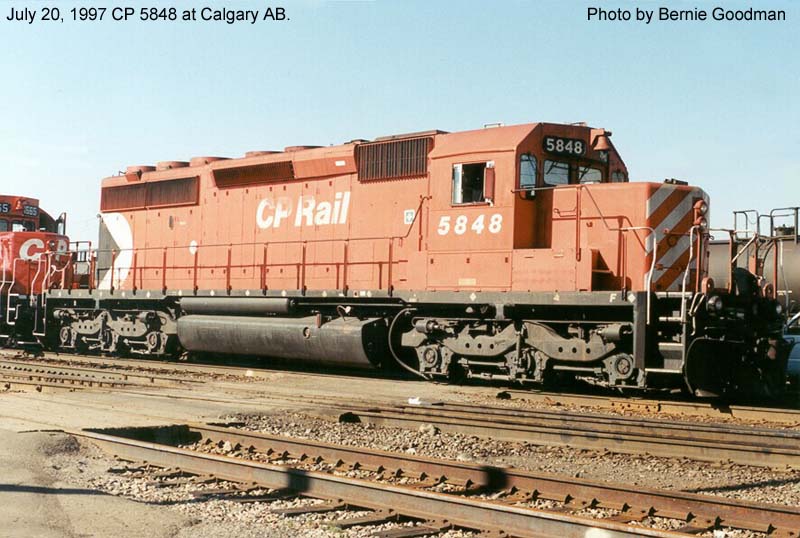 1. CP 5848 at Calgary, AB., painted in the CP Rail Small Multimark paint scheme. Photo by Bernie Goodman, 1997;