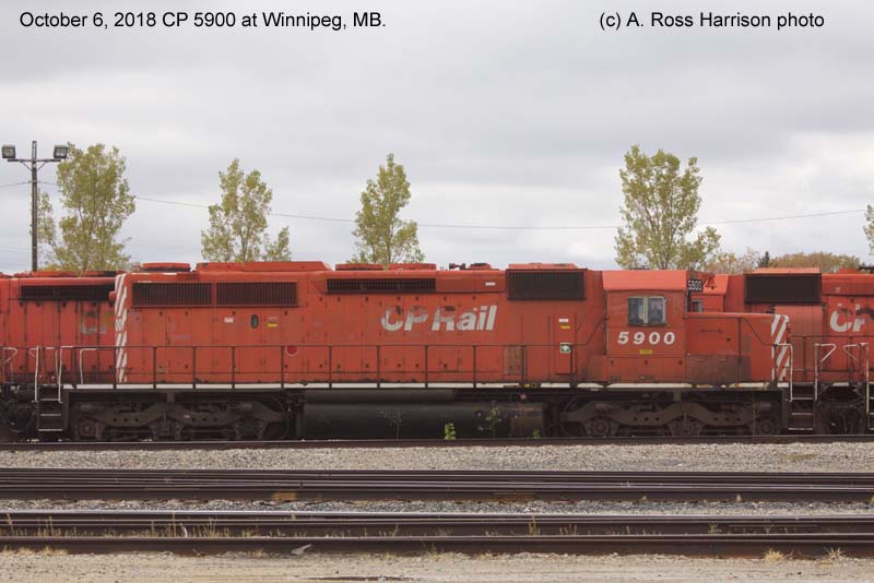 5. CP 5900 at Winnipeg, MB., painted in the CP Rail no-Multimark paint scheme. Photo by A. Ross Harrison, 2018.