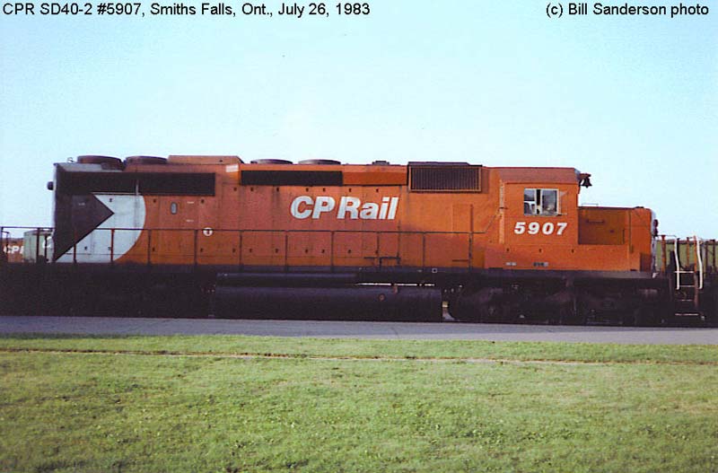 2. CP 5907 at Smiths Falls, ON., painted in the CP Rail no-Multimark paint scheme. Photo by Bill Sanderson, 1990;