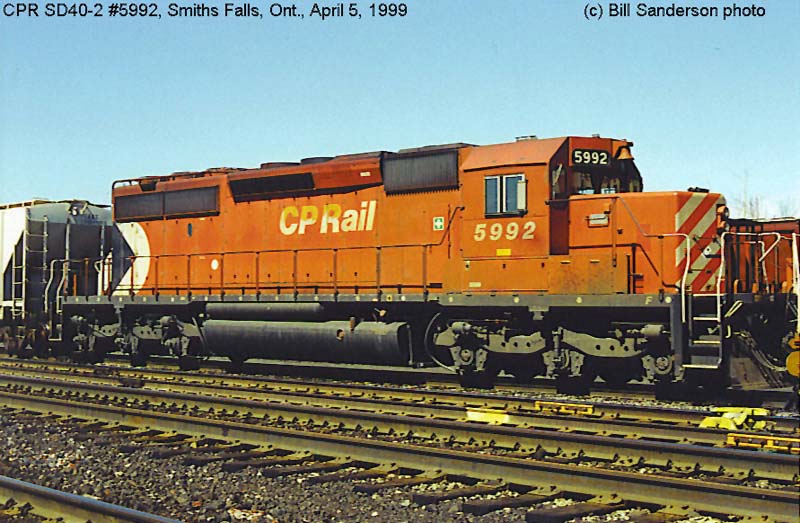 2. CP 5992 at Smiths Falls, ON., painted in the CP Rail Small Multimark paint scheme. Photo by Bill Sanderson, 1999;