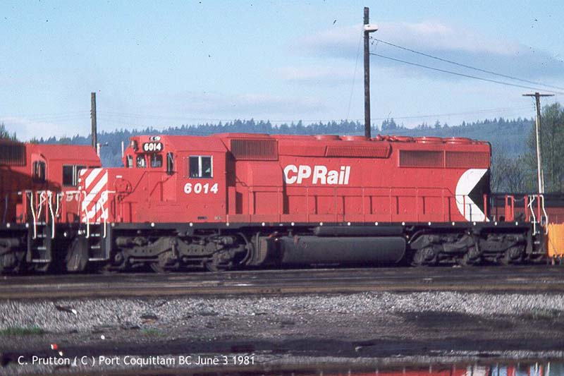 1. CP 6014 at Port Coquitlam, B.C., painted in the CP Rail Small Multimark paint scheme. Photo by Claude Prutton, 1981;