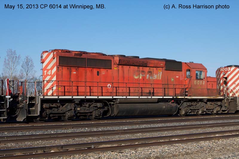 2. CP 6014 at WInnipeg, MB., painted in the CP Rail no-Multimark paint scheme. Photo by A. Ross Harrison, 2013.