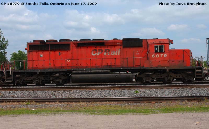 Notes : Built by GMD as #5858 (1978). Renumbered to #6079 (4/5/1989). Converted to B-unit (12/13/1991) for trailing purposes only, cab windows blanked out. Later restored to lead unit (12/1997). Tied up (un)serviceable. ___________________________________________________________________________________________