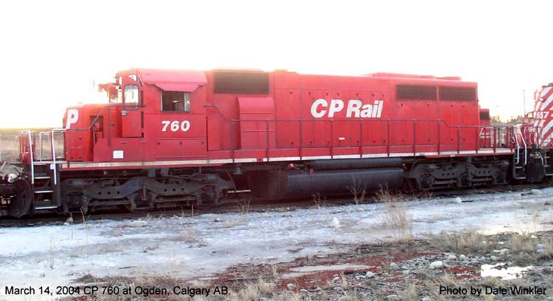 Other Photos (chronological) : 1. SOO 760 at Minneapolis, MN., painted in the SOO Red/White paint scheme. Photo by Roger Bee, 1985. From the Bill Sanderson collection; 2. CP 760 at Ogden, Calgary AB., painted in the CP Rail paint scheme. Photo by Dale Winkler, 2004.
