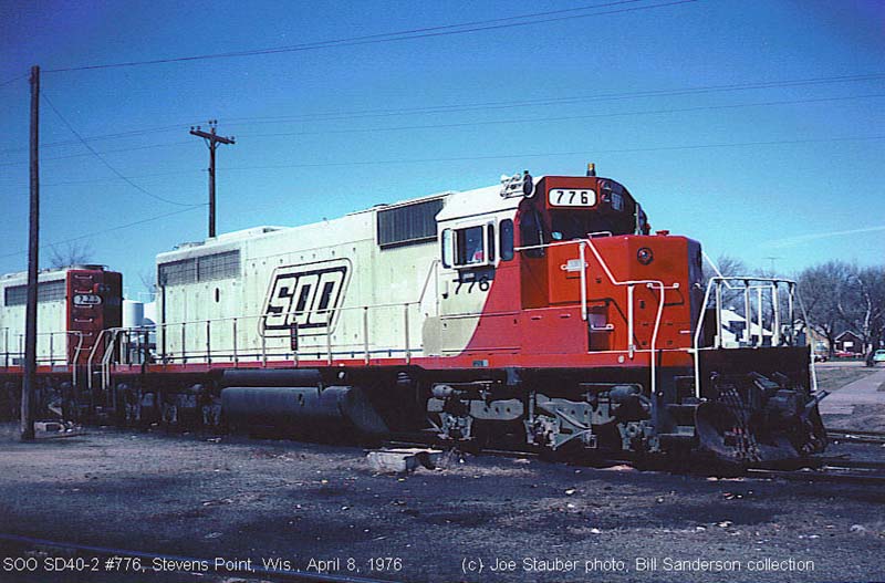 Other Photos (chronological) : 1. SOO 776 at Stevens Point, WI., painted in the SOO Red/White "Parallelogram" paint scheme. Photo by Joe Stauber, 1976. From the Bill Sanderson collection.