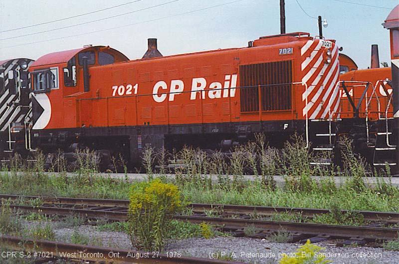 Other Photos (chronological) : 1. CP 7021 at Toronto, ON., painted in the CP Rail Multimark paint scheme. Photo by P.A. Patenaude, 1978. From the Bill Sanderson collection.