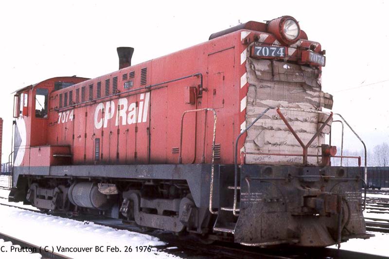 Other Photos (chronological) : 1. CP 7074 at Vancouver, B.C., painted in the CP Rail Multimark paint scheme. Photo by Claude Prutton, 1976.