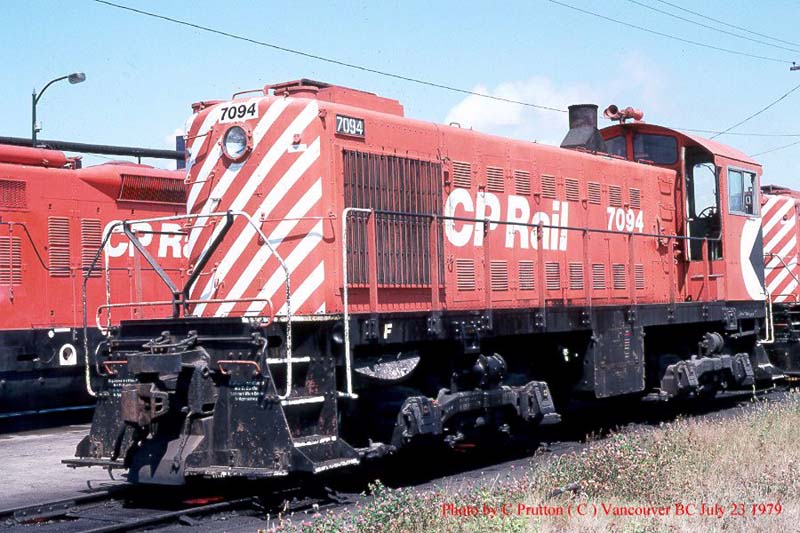 Built by : MLW Built in : 1949 Serial Number : 75869 Class : DS-10h Paint Scheme : CP Rail Multimark This Photo : Claude Prutton, 1979