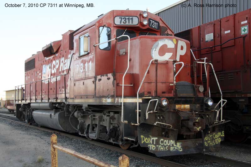 5. CP 7311 at Winnipeg, MB., painted in the CP Rail Dual Flags paint scheme. Photo by A. Ross Harrison, 2010