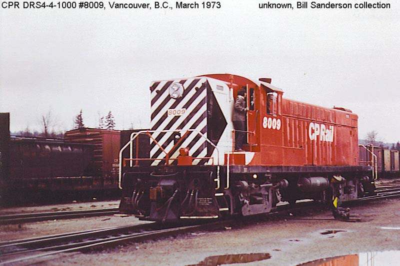 2. CP 8009 at Vancouver, B.C., painted in the CP Rail Large Multimark paint scheme. Photographer unknown, 1973. From the Bill Sanderson collection;
