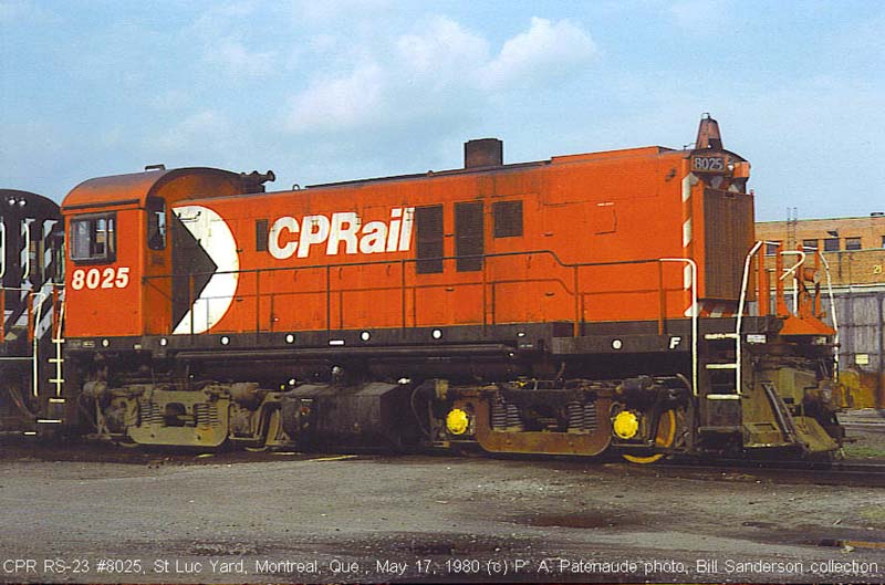 Other Photos (chronological) : 1. CP 8025 at Montreal, QC., painted in the Maroon & Grey "Script" paint scheme. Photo by Al Chione, 1972. From the Bill Sanderson collection; 2. CP 8025 at Brownville Jct., ME., painted in the CP Rail Multimark paint scheme. Photographer unknown, 1974. From the Bill Sanderson collection; 3. CP 8025 at Montreal, QC., painted in the CP Rail Multimark paint scheme. Photo by P.A. Patenaude, 1980. From the Bill Sanderson collection;