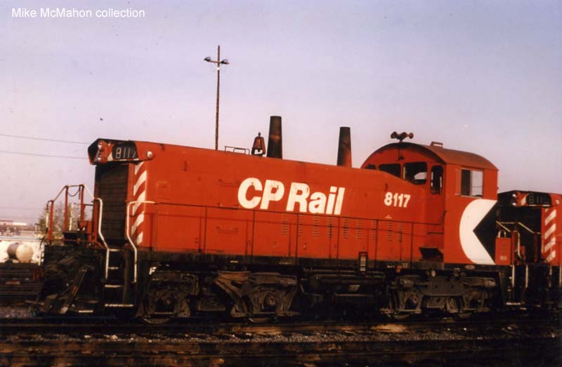 Other Photos (chronological) : 1. CP 8117 at Saskatoon, SK., painted in the Maroon & Grey "Block" paint scheme. Photo by Bob Loat, 1967. From the Bill Sanderson colection; 2. CP 8117 at Alyth, Calgary AB., painted in the CP Rail Multimark paint scheme. Photo by Bruce Chapman, 1977. From the Bill Sanderson collection; 3. CP 1208 at Vancouver, B.C., painted in the CP Rail Multimark paint scheme. Photo by Claude Prutton, 1981.
