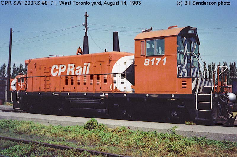 Other Photos (chronological) : 1. CP 8171 at Sault Ste. Marie, ON., painted in the Maroon & Grey "Script" paint scheme. Photo by Bruce Chapman, 1974. From the Bill Sanderson collection; 2. CP 8171 at Toronto, ON., painted in the CP Rail Multimark paint scheme. Photo by Bill Sanderson, 1985; 3. CP 8171 at Ogden, Calgary AB., painted in the CP Rail no-Multimark paint scheme. Photo by Dale Winkler, 2003; 4. CP 1160 at Thunder Bay, ON., converted to Yard Control Unit #1160, painted in the CP Rail no-Multimark paint scheme. Photo by Mark Boesche, 2004.