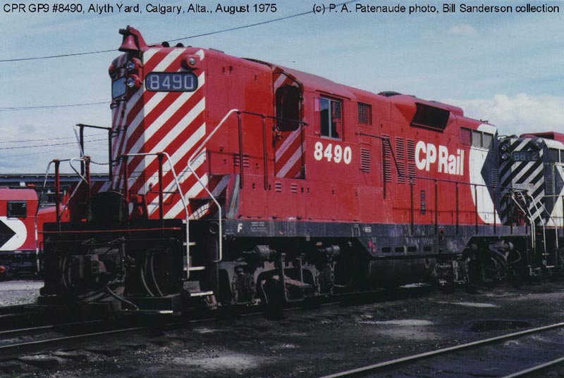 Other Photos (chronological) : 1. CP 8490 at Smiths Falls, ON., painted in the Maroon & Grey "Script" paint scheme. Photo by Bruce Chapman, 1967. From the Bill Sanderson collection; 2. CP 8490 at Alyth, Calgary AB., painted in the CP Rail Large Multimark paint scheme. Photo by P.A. Patenaude, 1975. From the Bill Sanderson collection; 3. CP 1550 at Port Coquitlam, B.C., painted in the CP Rail System paint scheme. Photo by Mark Forseille, 2006.