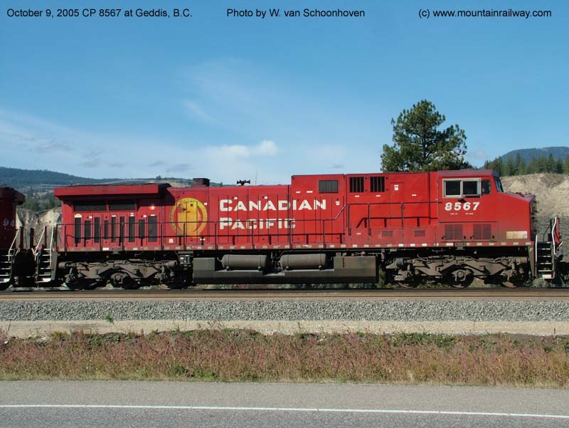 Other Photos :(chronological) : 1. CP 8567 at Geddis, B.C., painted in the CPR Beaver paint scheme. Photo by Wilco van Schoonhoven, 2005.