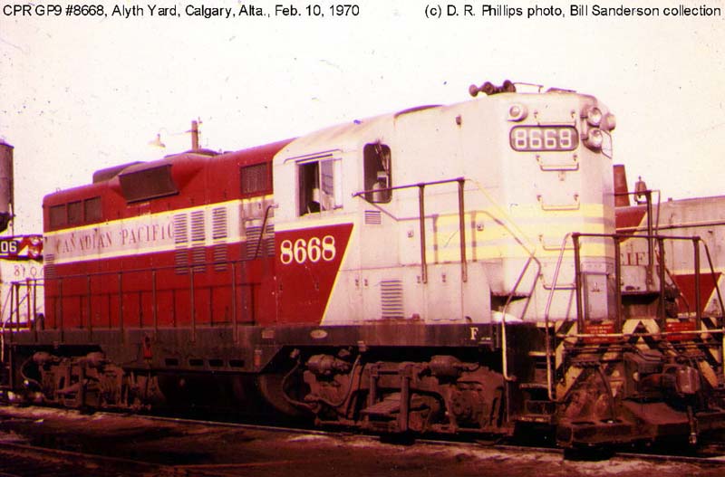 Other Photos (chronological) : 1. CP 8668 at Alyth, Calgary AB., painted in the Maroon & Grey "Block" paint scheme. Photo by D.R. Phillips, 1970. From the Bill Sanderson collection; 2. CP 8668 at Smiths Falls, ON., painted in the CP Rail Small Multimark paint scheme. Photo by Bill Sanderson, 1988; 3. St.L&H 8216 at Toronto, ON., painted in the St.L&H paint scheme. Photo by Tom Twigge, 2005.