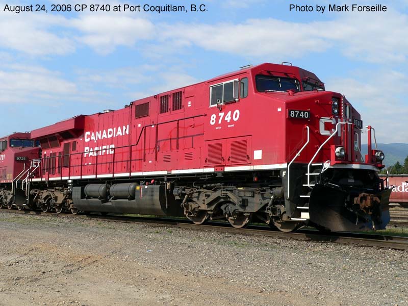 Other Photos (chronological) : 1. CP 8740 at Smiths Falls, ON., painted in the Canadian Pacific paint scheme. Photo by Bill Sanderson, 2006.