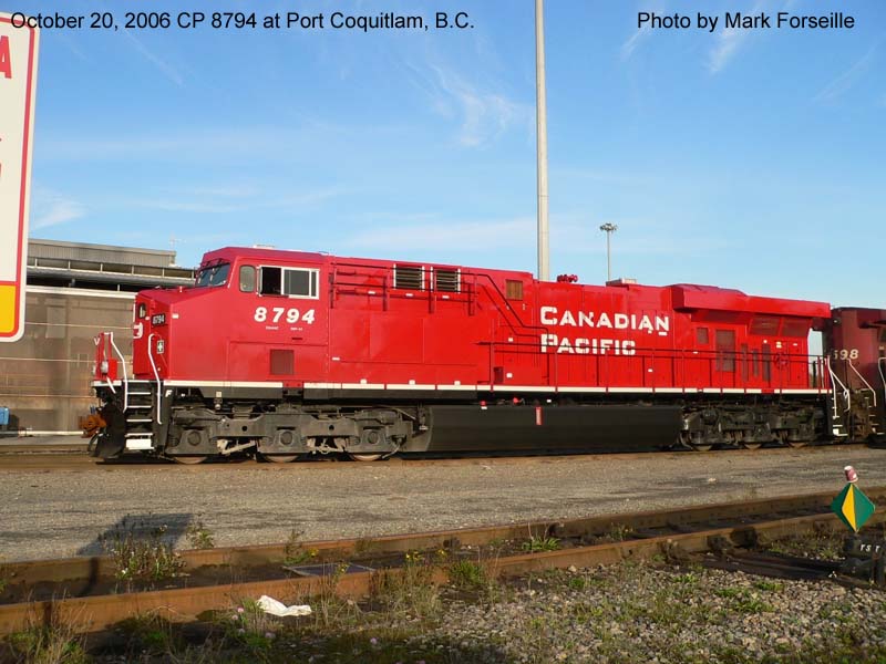 Other Photos (chronological) : 1. CP 8794 at Port Coquitlam, B.C., painted in the Canadian Pacific paint scheme. Photo by Mark Forseille, 2006.