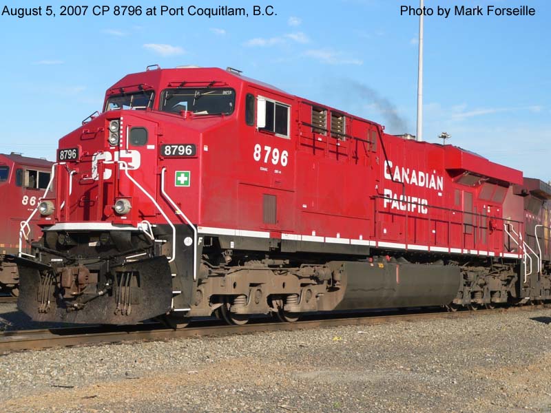 Other Photos (chronological) : 1. CP 8796 at Port Coquitlam, B.C., painted in the Canadian Pacific paint scheme. Photo by Mark Forseile, 2007.
