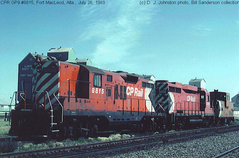 Other Photos (chronological) : 1. CP 8815 at Ottawa, ON., painted in the CP Rail Large Multimark paint scheme. Photo by Bruce Chapman, 1976. From the Bill Sanderson collection; 2. CP 8815 at Edmonton, AB., painted in the CP Rail Large Multimark paint scheme. Photo by Cor van Steenis, 1981; 3. CP 8815 at Fort MacLeod, AB., painted in the CP Rail Large Multimark paint scheme. Photo by D.J. Johnston, 1983. From the Bill Sanderson collection; 4. CP 1599 at Toronto, ON., painted in the CP Rail Small Multimark paint scheme. Photo by Bill Sanderson, 2002.