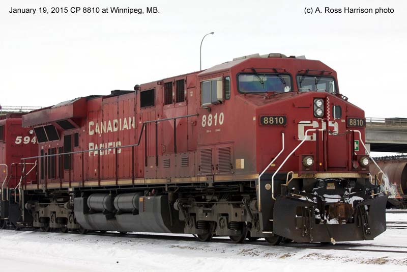 Other Photos (chronological) : 1. CP 8810 at Smiths Falls, ON., painted in the Canadian Pacific paint scheme. Photo by Bill Sanderson, 2007; 2. CP 8810 at Winnipeg, MB., painted in the Canadian Pacific paint scheme. Photo by A. Ross Harrison, 2015.