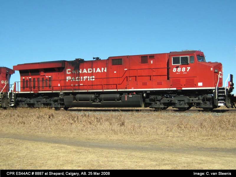 Other Photos (chronological) : 1. CP 8887 at Alyth, Calgary AB., painted in the Canadian Pacific paint scheme. Photo by Cor van Steenis, 2008.
