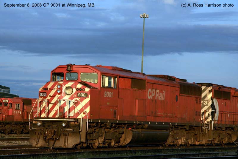 Other Photos (chronological) : 1. CP 9001 at Shepard, Calgary AB., painted in the CP Rail no-Multimark paint scheme. Photo by Cor van Steenis, 2008; 2. CP 9001 at Winnipeg, MB., painted in the CP Rail no-Multimark paint scheme. Photo by A Ross Harrison, 2008; 3. CP 9001 at Winnipeg, MB., painted in the CP Rail no-Multimark paint scheme. Photo by A Ross Harrison, 2008.