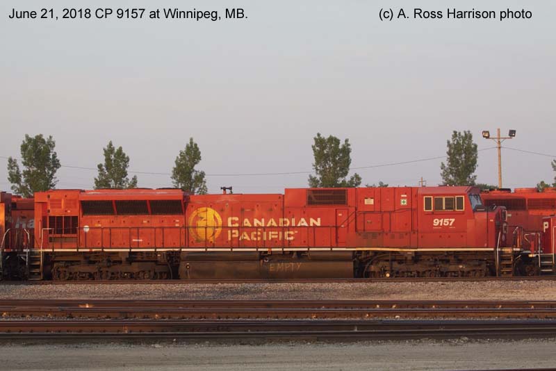 Other Photos (chronological) : 1. CP 9157 at Thunder Bay, ON., painted in the CPR Beaver paint scheme. Photo by Bill Sanderson, 2001; 2. CP 9157 at Winnipeg, MB., painted in the CPR Beaver paint scheme. Photo by A. Ross Harrison, 2015; 3. CP 9157 at Winnipeg, MB., painted in the CPR Beaver paint scheme. Photo by A. Ross Harrison, 2018; 4. CP 7038 at Pitt Meadows, B.C., painted in the CPR Beaver II paint scheme. Photo by Mark Forseille, 2020.