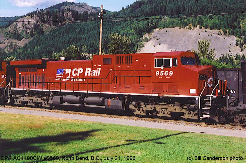 Other Photos (chronological) : 1. CP 9569 at North Bend, B.C., painted in the CP Rail Dual Flags paint scheme. Photo by Bill Sanderson, 1996; 2. CP 9569 at Port Coquitlam, B.C., painted in the CPR Beaver paint scheme. Photo by Mark Forseille, 2006.