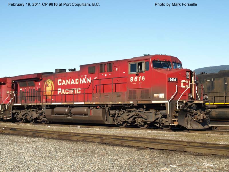 Other Photos (chronological) : 1. CP 9616 at Revelstoke, B.C., painted in the CPR Beaver paint scheme. Photo by Wilco van Schoonhoven, 2004; 2. CP 9616 at Port Coquitlam, B.C., painted in the CPR Beaver paint scheme. Photo by Mark Forseille, 2011; 3. CP 8119 at Coquitlam, B.C., painted in the CPR Beaver II paint scheme. Photo by Mark Forseille, 2019.