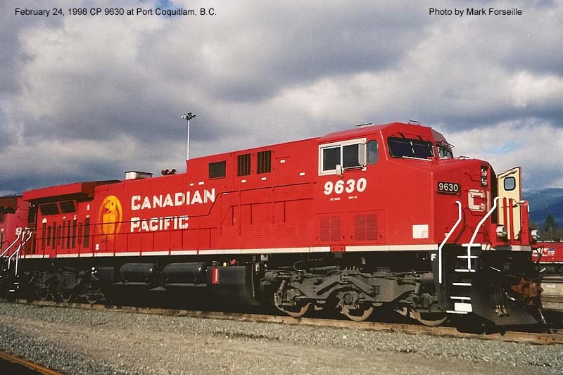 Other Photos (chronological) : 1. CP 9630 at Port Coquitlam, B.C., painted in the CPR Beaver paint scheme. Photo by Mark Forseille, 1998; 2. CP 9630 at Port Coquitlam, B.C., painted in the CPR Beaver paint scheme. Photo by Mark Forseille, 2001.