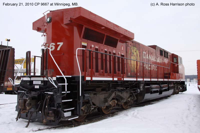 2. CP 9667 at Winnipeg, MB., painted in the CPR Beaver paint scheme. Photo by A. Ross Harrison, 2010;