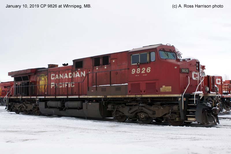 Other Photos (chronological) : 1. CP 9826 at Port Coquitlam, B.C. painted in the CPR Beaver paint scheme. Photo by Mark Forseille, 2008; 2. CP 9826 at Winnipeg, MB., painted in the CPR Beaver paint scheme. Photo by A. Ross Harrison, 2011; 3. CP 9826 at Winnipeg, MB., painted in the CPR Beaver paint scheme. Photo by A. Ross Harrison, 2019.