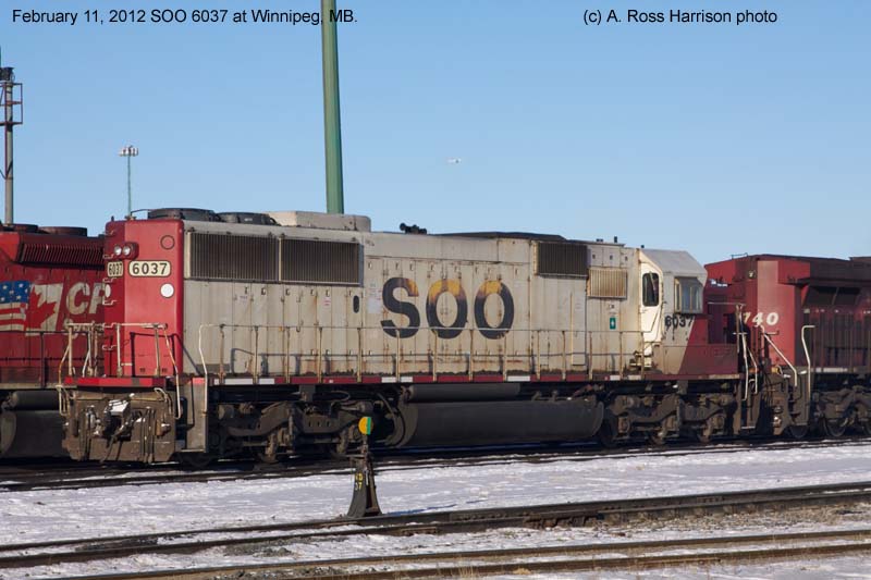 Other Photos (chronological) : 1. SOO 6037 at Winnipeg, MB., painted in the SOO Red/White paint scheme. Photo by A. Ross Harrison, 2012; 2. CP 6301 at Milwaukee, WI., painted in the Canadian Pacific paint scheme. Photo by Ed Weisensel, 2018.